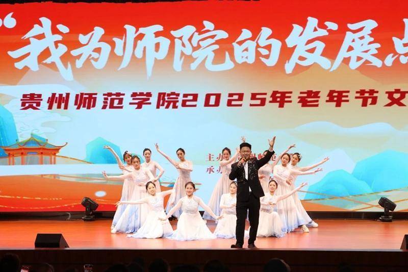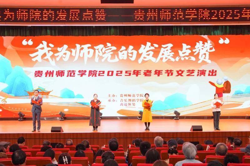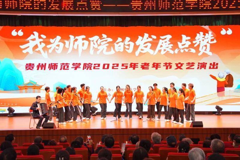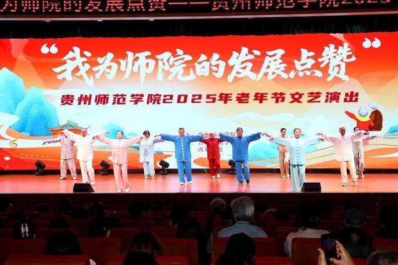 贵州师范学院老年节欢庆会现场。枫叶经霜红愈艳,菊花晚节馥尤香。为弘扬中华民族尊老、敬老、爱老、助老的传统美德,10月29日,贵州师范学院举行老年节欢庆会,百余位离退休教职工代表齐聚一堂共度重阳佳节,共承敬老美德,共话发展新篇。老同志代表与师生一同表演,他们以饱满的热情、精湛的技艺,共同呈现了一场精彩纷呈、内涵丰富的文化盛宴。(文/董琪 图/褚琴丽、冉海军)